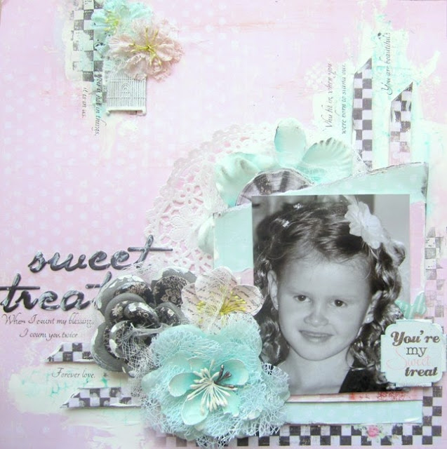 Here is my second layout for my reveal at Scraps of Elegance Kits. I love the combination of the pinks and aqua colors and I created a feminine layout about my daughter.